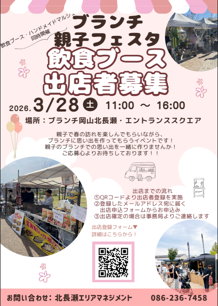 時間:11:00~16:00場所:ブランチ岡山北長瀬【出店申込するには】下記の登録ボタンよりイベント出店登録フォームにご登録ください。申し込みフォームをお送りさせていただきます。